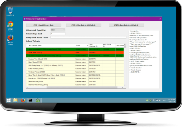 A custom Windows desktop application to automatically sync and migrate hundreds of thousands of records including customer, quote, project and invoice data from our clientโs legacy Kickserv account to their new MyHelpDesk system.